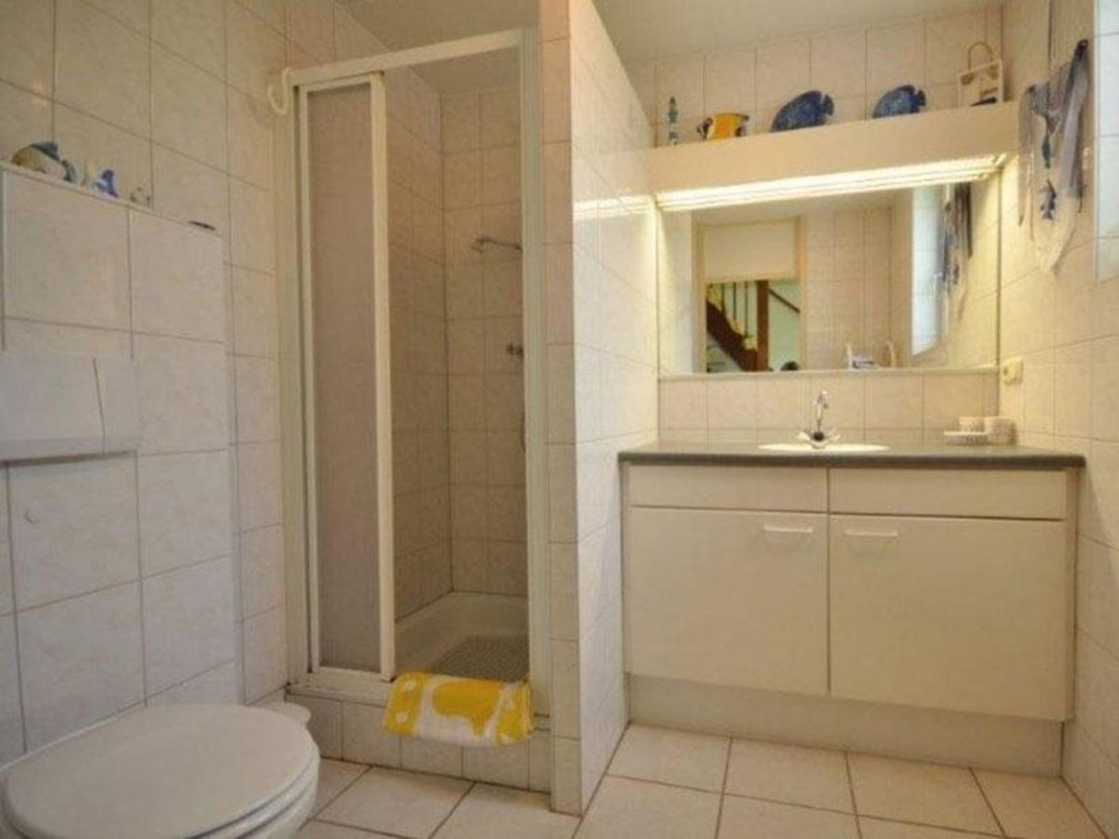 De badkamer met douche en toilet bevindt zich ook op de begane grond.
